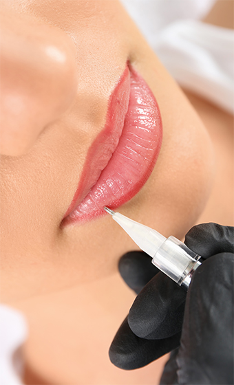 - Pigmentation à l’aide d’un dermographe, le professionnel insère les pigments dans la peau